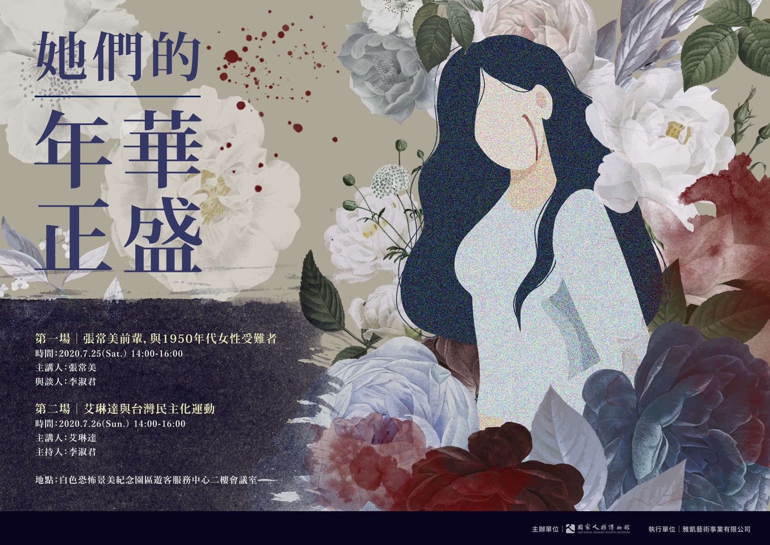 7/26(日)!國家人權博物館 白色恐怖景美紀念園區導覽辦公室隆重推出 【她們的年華正盛 系列講座】,感興趣的朋友,請把握機會迅速到線上報名!