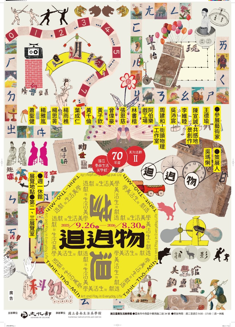 由策展人吳瑪悧教授規劃,本次遊戲展匯集18位藝術家與遊戲相關的作品與裝置,並由跨齡、跨世代及青少年民眾參與22場工作坊,共同創作完成展出。開幕以物件劇場揭幕,展現遊戲與藝術的創造性連結,也呼應『生活美學就在時刻的玩興中』的策展理念。展覽邀請觀眾在互動、感官與想像之間穿梭,體驗藝術如何融入日常片刻,轉化為一場場有趣且啟發思考的生活遊戲。
