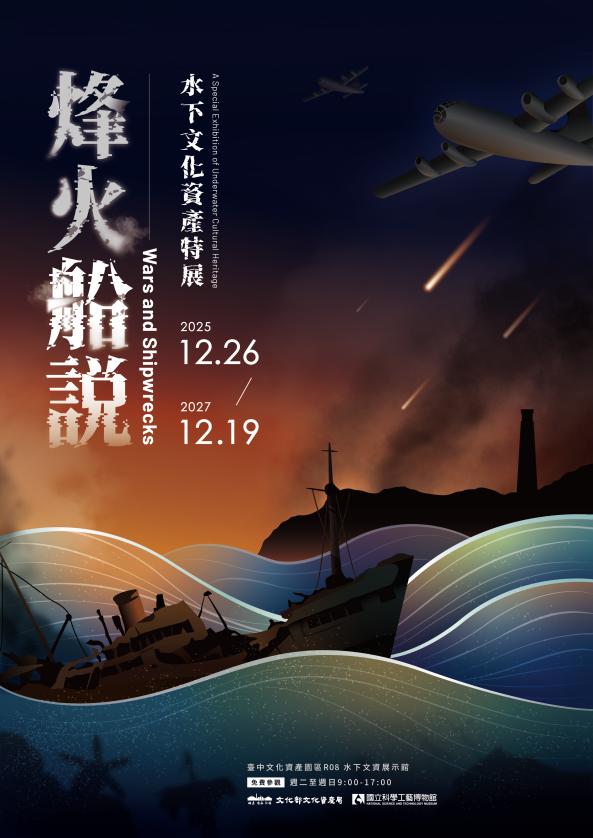 展覽以戰爭及沉船為主題,帶領觀眾了解臺灣海戰歷程及與之相關的沉船遺址。展覽規劃四大展區,首先是「臺灣海洋戰爭史」,以互動投影技術呈現自明清時期至二戰的臺灣重大海戰歷史事件;隨後進入「臺灣沉船故事」展區,「烽火船說:海空對決」沉浸式劇場為展覽亮點,重現1944年澎湖馬公港周遭船艦遭空襲沉沒的情境;接著是「烽火記憶-戰爭沉船文物」展區,展示了我國重要列冊沉船及出水遺物的故事。;後「守護與永續」展區設計了互動遊戲,以寓教於樂的方式傳達水下考古知識。期待藉由展覽讓觀眾感受出水遺物承載的歷史記憶與深厚的背景底蘊,並對水下文資保存維護與永續發展有更深入的理解。