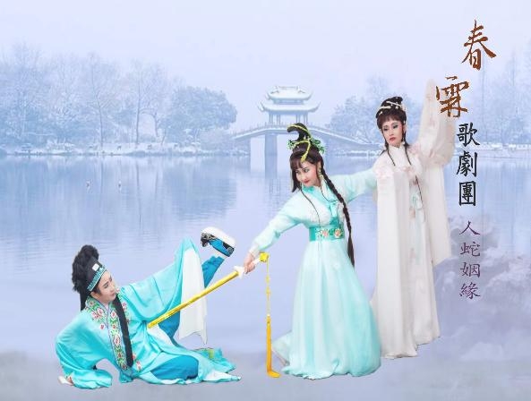 〈人蛇姻緣〉 白素貞為救夫君,水漫金山寺,對陣時不敵法海,敗退來到斷橋,不禁觸景傷情。許仙逃離金山寺,三人在斷橋重逢,小青遷怒於許仙的背信忘義,拔劍要殺許仙。白素貞不忍傷害許仙,一邊以好言勸慰小青,一邊哭罵許仙無情無義,許仙感到懊悔莫及,發誓絕不辜負白素貞,夫妻誤會盡釋,言歸於好。