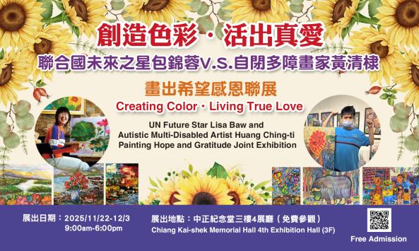 Creating Color.Living True Love—UN Future Star Lisa Baw and Autistic Multi-Disabled Artist Huang Ching-ti Painting Hope and Gratitude Joint Exhibition(Free Admission)