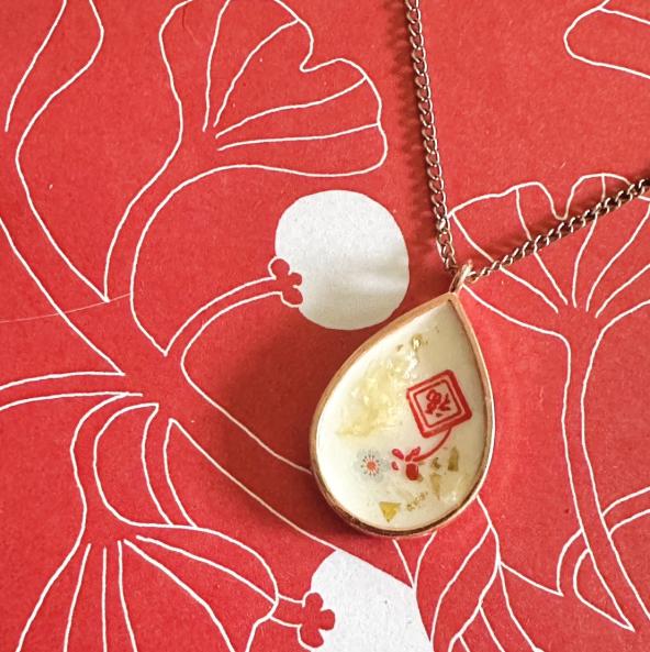 將繽紛夢幻的素材,滴膠、閃亮亮片、亮粉、乾燥花、柔和珍珠與璀璨水鑽等收納進金屬框中,加入年節元素防水貼紙,增添節慶氛圍,依個人喜好掏選喜歡的材料使用,製作一個獨一無二的吊飾或項墜。 |