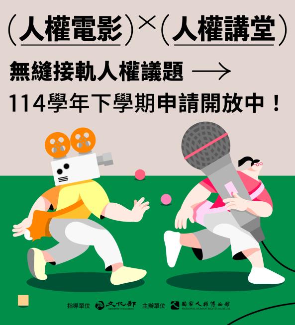 🔍申請辦法,歡迎至國家人權博物館官網/教育推廣/人權學習專區/人權教育電影暨人權講堂https://www.nhrm.gov.tw/w/nhrm/Course 查詢