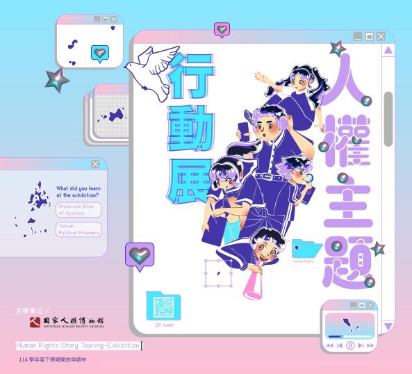 🔍想知道更多?相關展覽內容,歡迎至國家人權博物館官網/教育推廣/人權學習專區/人權主題行動展 https://www.nhrm.gov.tw/w/nhrm/ActionExhibition 查詢
