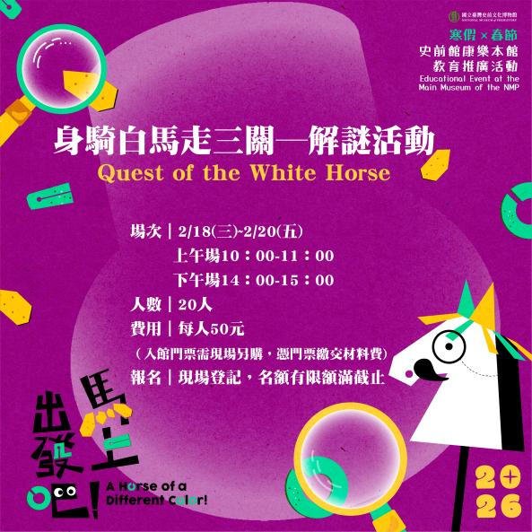🐴 馬年到!你準備好騎上白馬闖關了嗎? 🐎 「我身騎白馬,走三關? 」⛔️ 較停仔!來到史前館,關卡直接升級成 30 大關!歡迎走進史前館,與大家組隊出發, 一步步找到祕寶的謎底,一路過關斬將。 🎯 任務已啟動, 🐎 駿馬已就位, 👉 史前館,等你來闖!