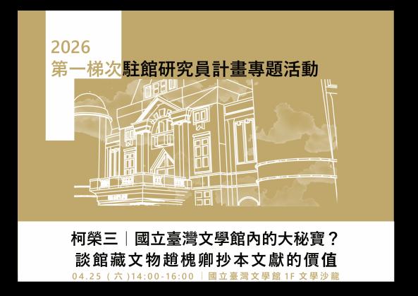 2026駐館研究員專題活動【4月場次】國立臺灣文學館內的大秘寶?談館藏文物趙槐卿抄本文獻的價值