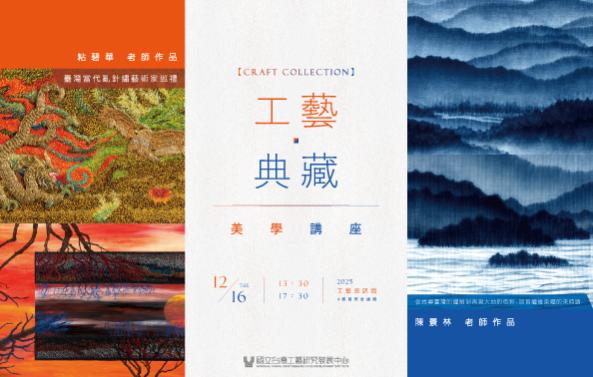 為推廣臺灣工藝美學與技藝傳承,國立臺灣工藝研究發展中心於2025年12月16日(二)於工藝資訊館四樓國際會議廳舉辦「工藝典藏美學講座」活動,誠摯邀請各界踴躍報名參與。
