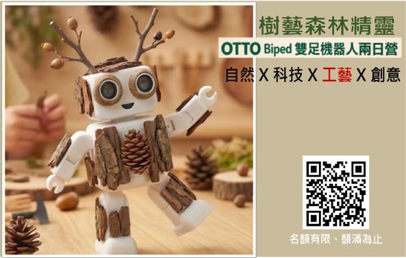 為推動工藝教育向下扎根,並促進科技與自然素材的跨域結合,樹藝工坊辦理「OTTO Biped 雙足機器人兩日營」,透過圖形化程式設計與實作導向課程,引導學童親手打造會行走、會互動的雙足機器人,在動手做的過程中,體驗科技創作的樂趣,培養邏輯思維與創造力。