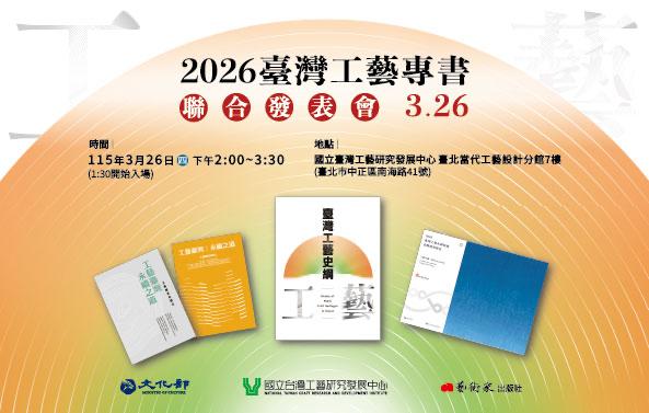 「2026臺灣工藝專書聯合發表會」推出三大出版品:《臺灣工藝史綱》、《工藝臺灣-永續之道》及《2025臺灣工藝永續發展自願檢視報告》,分別從歷史文化、產業實踐與永續治理切入,展現臺灣工藝深厚底蘊、多元精神與未來願景。活動邀集工藝專家、產業代表及藝文、教育、出版界人士齊聚交流,共同推動工藝永續發展。