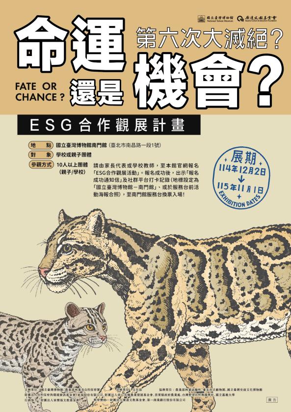 第六次大滅絕?命運還是機會」特展從地球五次大滅絕的歷史與科學證據出發,帶領觀眾理解人類活動正加速物種消失、推動第六次大滅絕的現況,並以臺灣瀕危物種與保育行動為例,思考我們是否仍能把滅絕從「命運」轉為「機會」。由廣達文教基金會教育贊助,邀請親子與學校團體沉浸式探索環境危機與生物多樣性,從認識到行動,共同實踐永續精神。