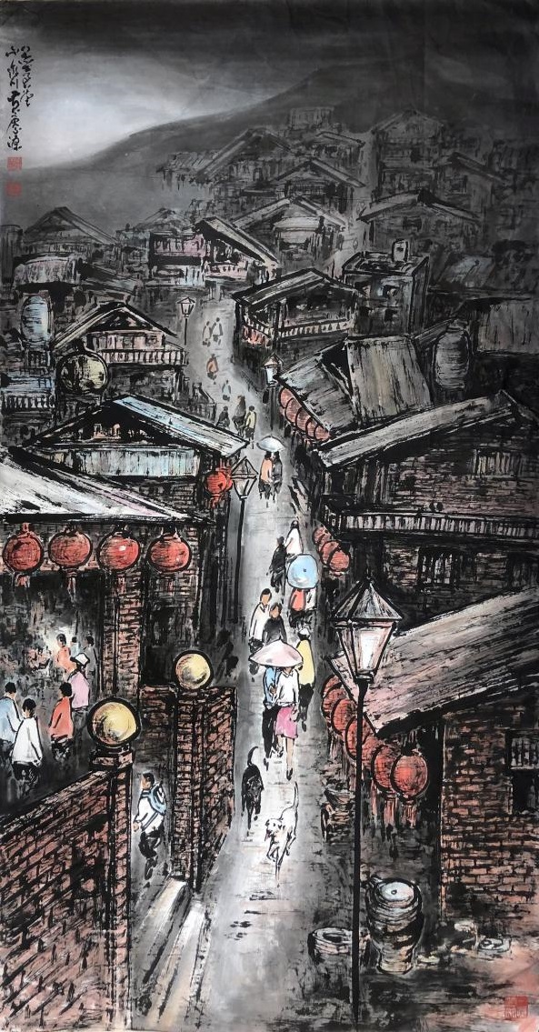 <一>、基本功訓練 : 樹的畫法 <二>、創作:九份山城 |